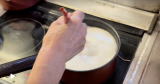 吹きこぼれだけを調節して、再沸騰してきたらさい箸でやさしくほぐしてください