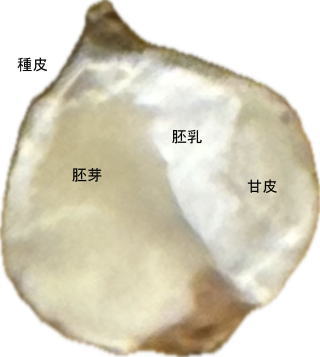 一 番 粉: 抜きを挽いたときに割れて出る胚乳の中心部分さらに挽くときに出てくるデンプン質が多く、